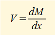 A small element of the beam height y1 above the neutral axis x-x with vertical faces A and B is subject to shearing forces V. The bending moment M varies along the beam and from our previous study we know: