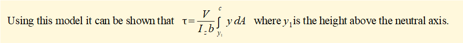 (In this model it was assumed that V has the same value on both vertical faces of the element, which is true for beams with point loading. For distributed loads, V is not constant but when the length of the element → 0 the expression above for τ is valid.)