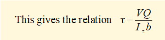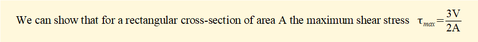 Compare this value with the assumption of uniformly distributed shear stress over the cross-section for shearing force V giving: