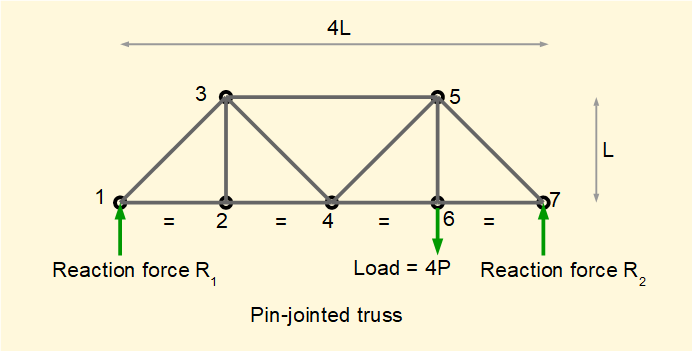 In this tutorial we determine the forces in individual members of a truss under load conditions using conditions of static equilibrium at each joint in the example below. It should be noted that this method is valid only for statically determinate structures.