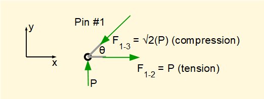 Gives a pulling tensile force (absolute value) F3-4 = F1-3 = √2(P)