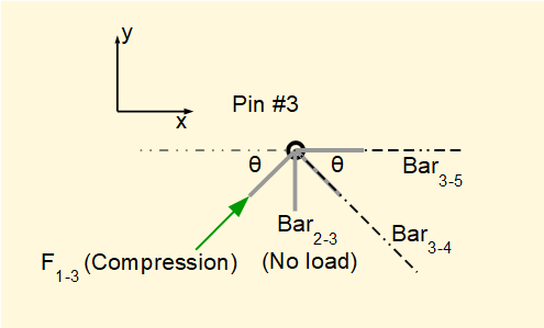 We know bar1-3 is in compression and bar2-3 has no load.