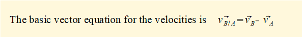 To recap from the previous tutorial we show below how relative velocities (and accelerations) are expressed as vectors. This relationship is the basis of the vector equations that follow.