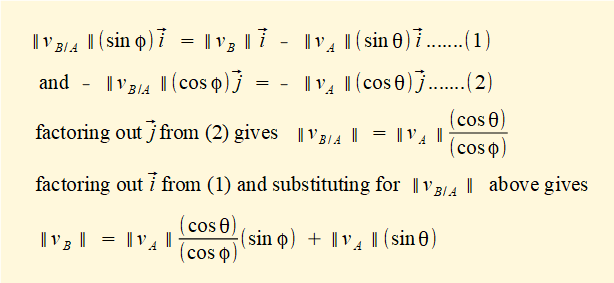 It can be shown that the expression for ||vB|| above is equivalent to that obtained in a previous tutorial by differentiation of displacement of point B with respect to time, viz.