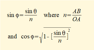 Again we use the example mechanism below and the relationship between sin θ, sin φ and cos φ, noted above, viz.