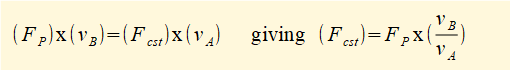 Using the principle that the rate of work done at point B must equal the rate of work done at point A it follows that: