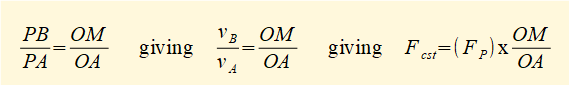 In this example OM is calculated from the extended velocity pole diagram above by simple geometry giving the value OM = 0.93 m.