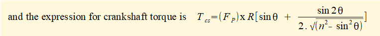 This method gives a first approximation of crankshaft torque excluding inertia forces and torques for the slider and connecting rod and gravity forces.